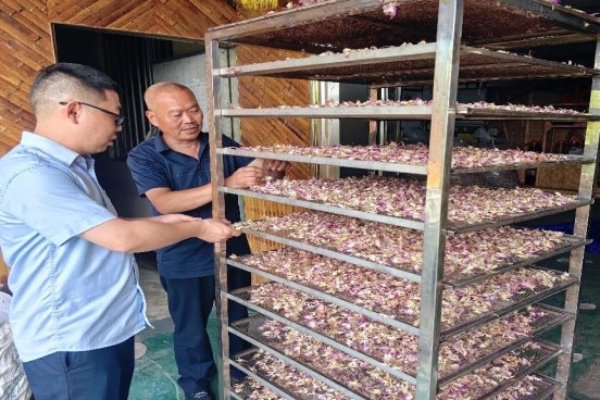 (图为:邮储银行工作人员了解石斛花烘干技术)